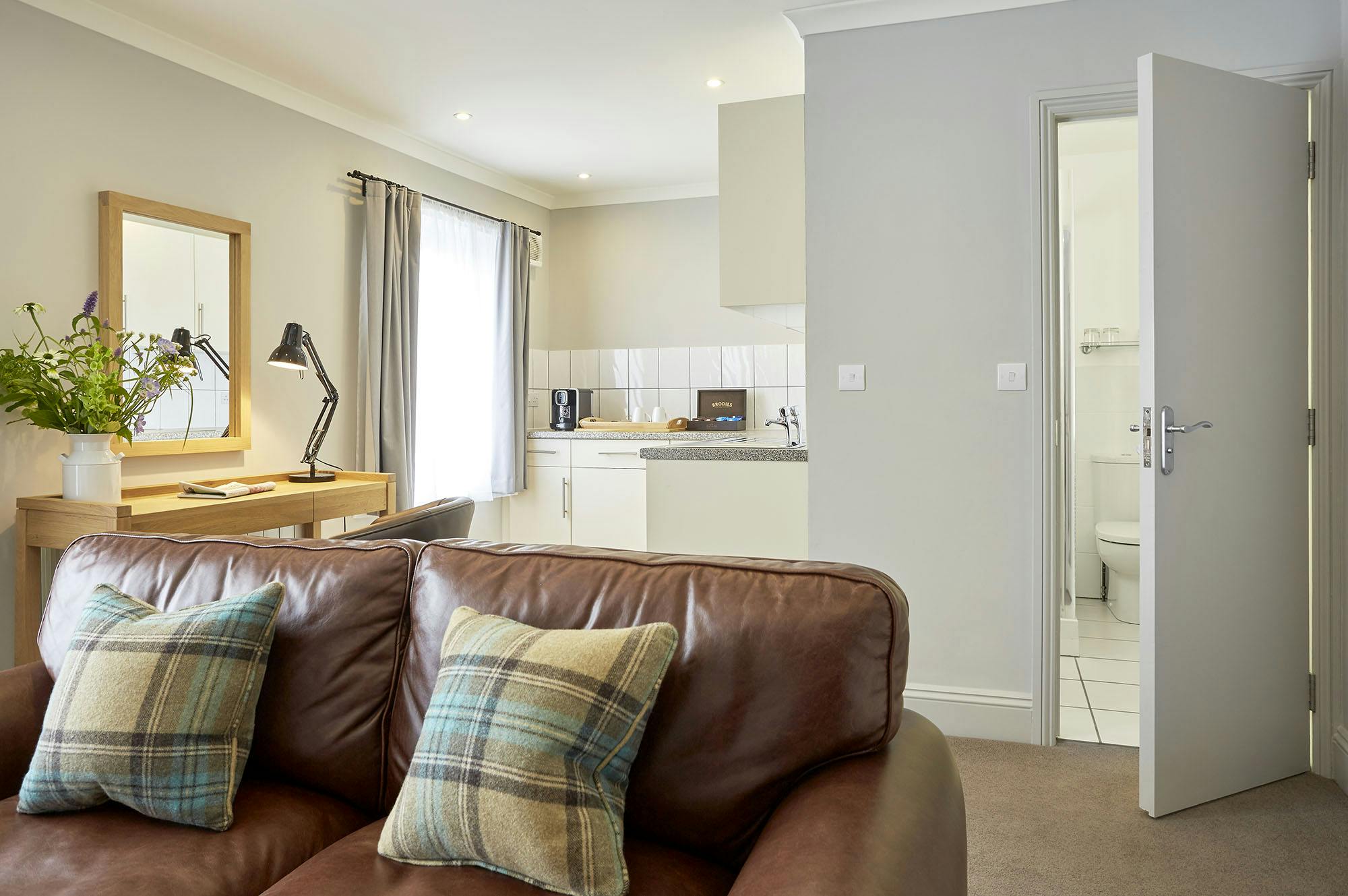 Our Studio Terrace Room features a separate seating area and small kitchen to help you set your own pace. Soft tones, oak details and crisp linens create a calm space to unwind in your own rhythm.